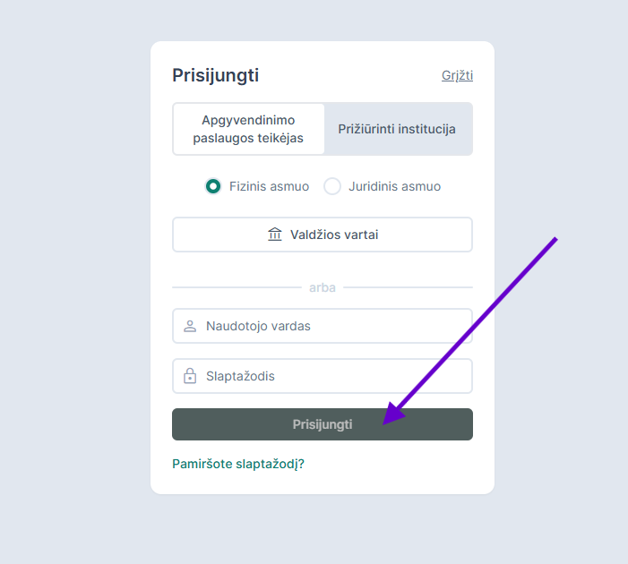 1 žingsnis. Prisijunkite prie e.Turistas portalo