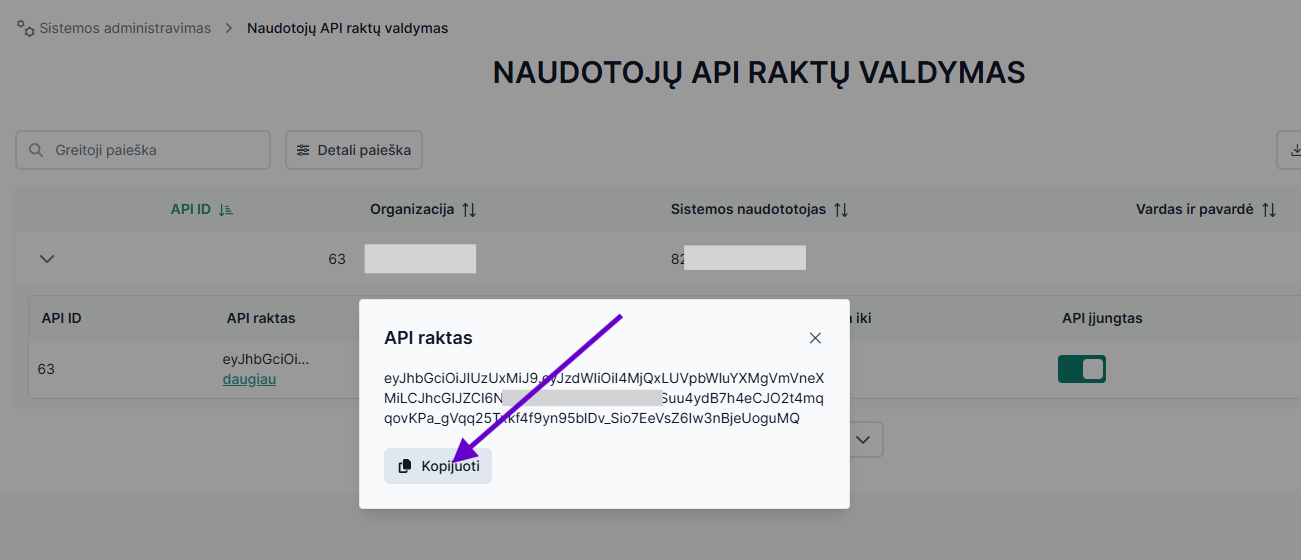 • Nukopijuojamas ne pats API raktas, o kitas sistemos įrašo tekstas.